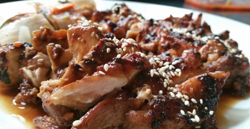 Here’s a picture of our dinner, egg noodles in a raw green sauce and Gochujang Chicken with homemade kimchi….give it a try. Create your own recipe today!
