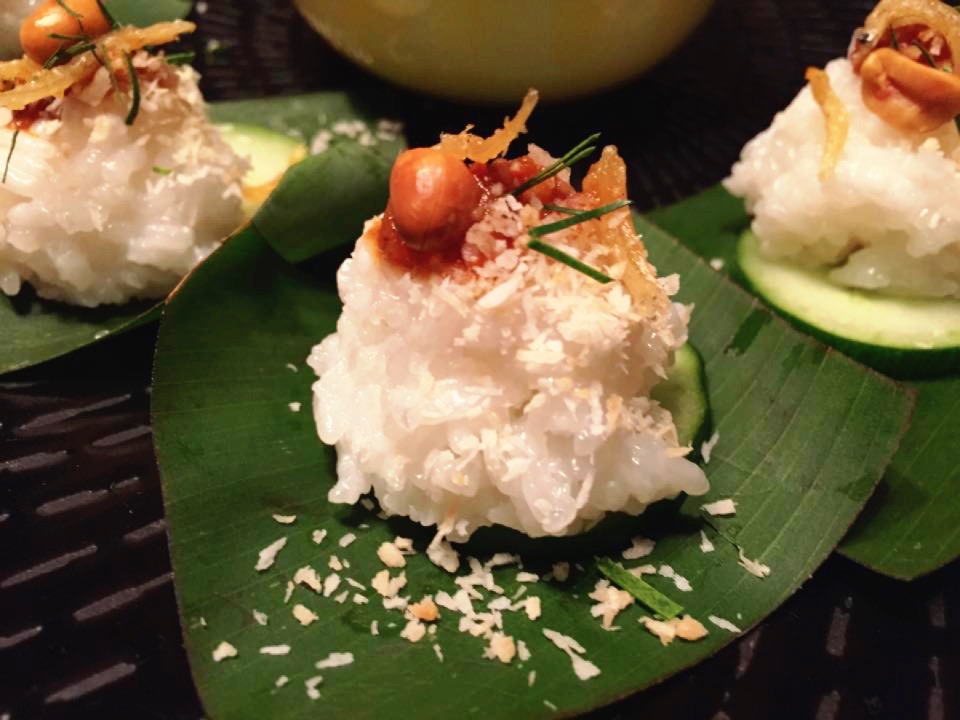 The Nasi Lemak on banana leaf is a canape I made for one of my supper club dinners. Picture taken on my iPhone5.